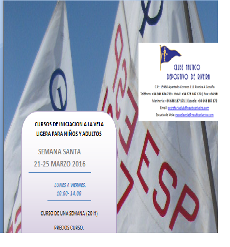 CURSOS DE INICIACION A LA VELA LIGERA PARA NIÑOS Y ADULTOS SEMANA SANTA MARZO 2016